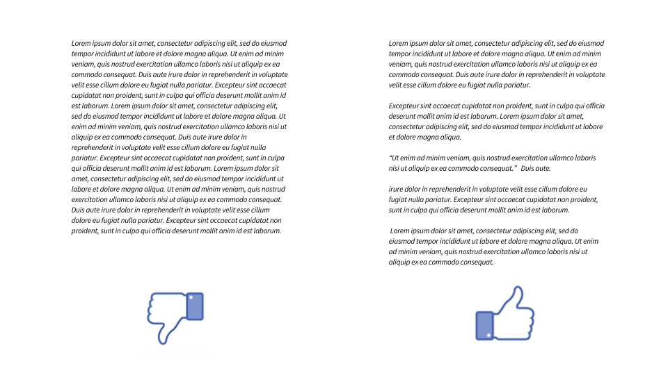 이는 체계나 서식이 없고, 행 길이도 적절히 나누지 않은 콘텐츠를 가리킨다. 이렇게 훑어보거나 처리하기 어려운 콘텐츠는 사용자의 인지 부하를 가중시킨다.