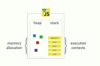 메모리 할당이 일어나는 힙과 콜 스택으로 구성되어 있다.