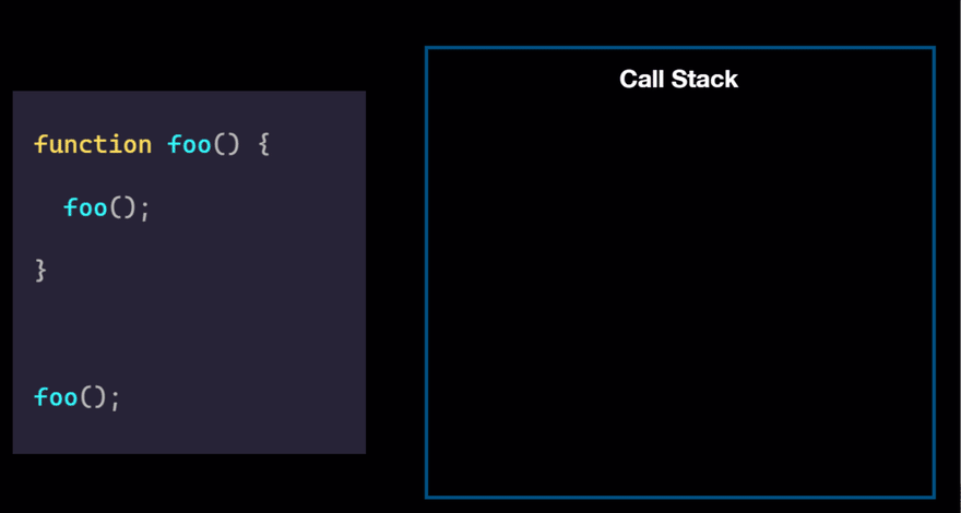 아래와 같이 스스로를 호출하는 함수를 계속 반복하면 chrome의 경우 RangeError : Maximum call stack size exceeded 에러가 발생한다.